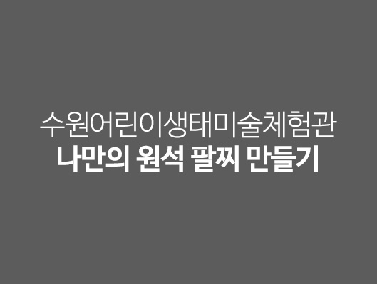수원시 어린이생태미술체험관은 자연과 예술이 결합된 전시를 바탕으로 인간과 자연이 공존하는 생태의 리듬을 오감으로 체득하며 경험할 수 있는 삶의 교육터이자 전시학습공간입니다. ‘돌고 도는 돌멩이’ 프로그램은 이번 전시 <돌멩이의 반란>展과 연계하여 아이들에게 주변 환경에서 주의 깊게 보지 않았던 자연물을 새로운 시각으로 바라보고 창의적인 시각을 길러주고자 기획되었습니다. 본 프로그램은 이번 기획전시의 김종렬 작가님과 함께하는 특별기획프로그램으로 원석가루를 이용해 팔찌를 제작하는 체험입니다. 가족들과 함께 즐거운 추억 만들어 가시기 바랍니다.